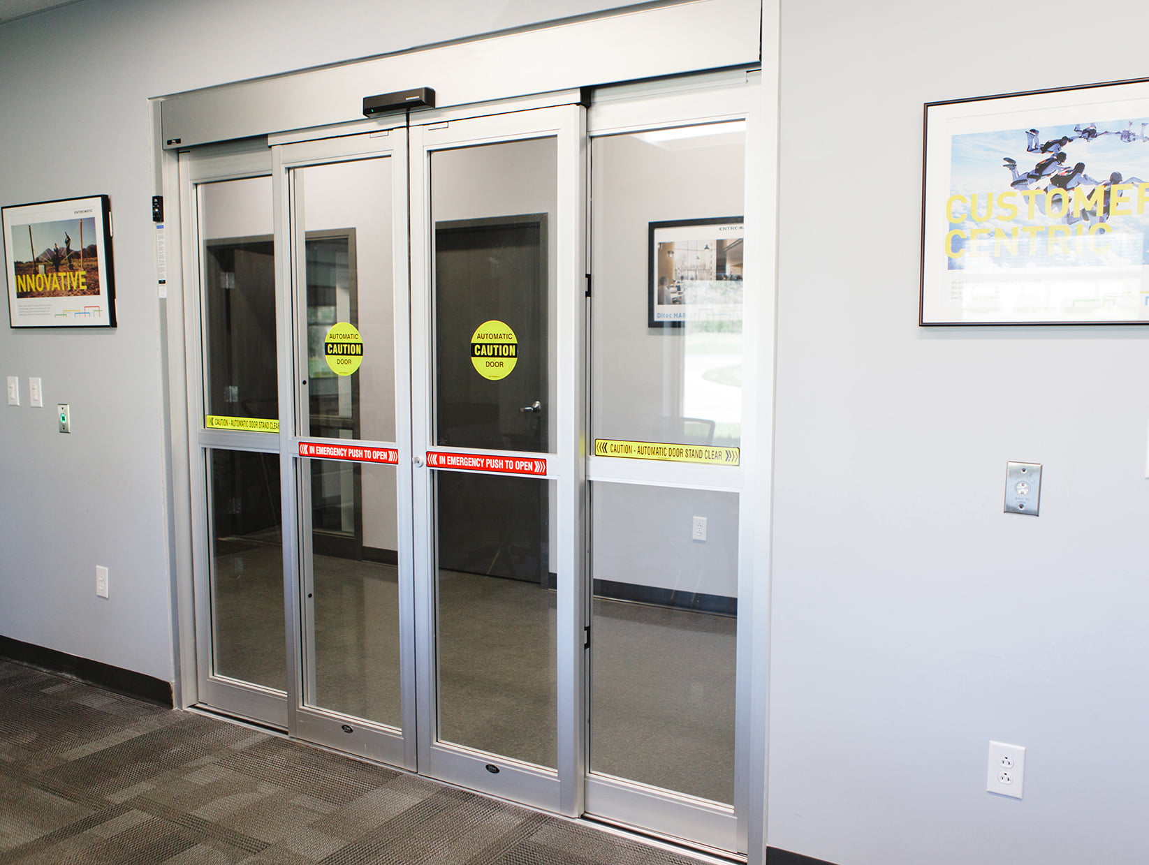 When considering a more elegant and low maintenance option, Record-Entrematic’s DS20 sliding door package is the pinnacle of door automation. With a wide array of options, and smooth and quiet operation, the DS20 sets a precedent for entrance aesthetics.